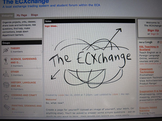 In addition, the ECX was a web-based local exchange system I created within the Edinburgh College of Art to help students share tools and materials, look for help, make new connections and find ways of learning. Edinburgh, 2009-2010.