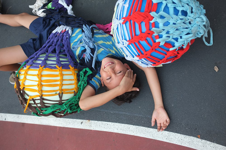 We filled the knitted structures with bouncy balls and played games with our creations. Beam Summer Day, 2017.
