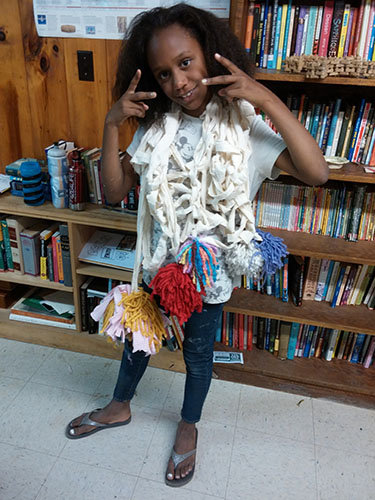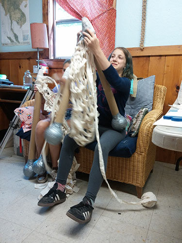 Kids at Beam Camp built giant knitting needles out of paper mache and cardboard tubes, learned to knit, and used