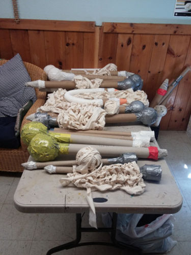 their handmade tools to create enormous accessories and human sized tubular structures. Some of us made giant pom poms, too!