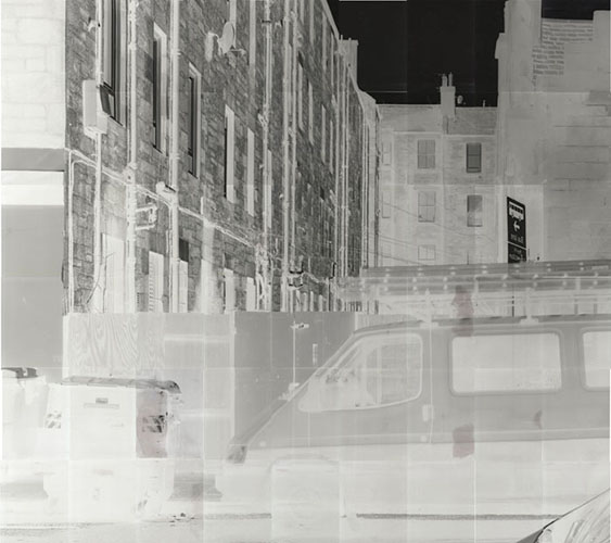 street life onto a 9 foot wall in the back of the store which I lined with photosensitive paper. I used the basement of the shop