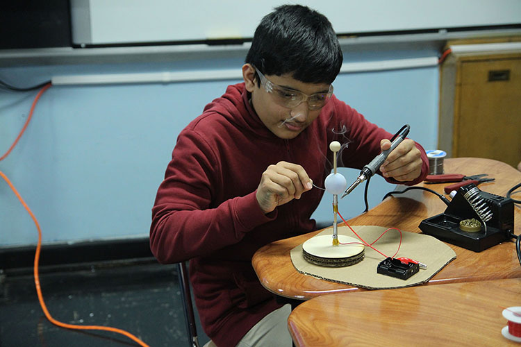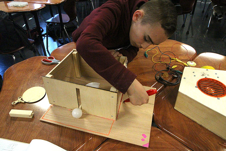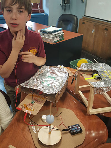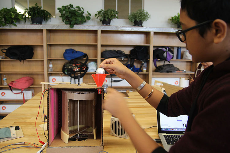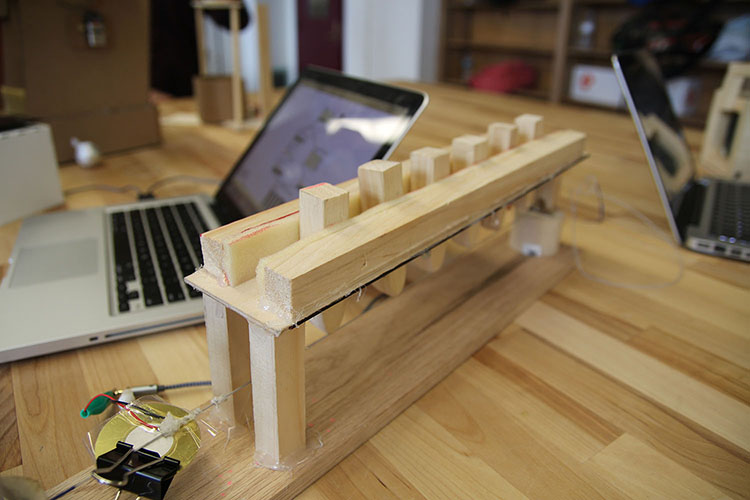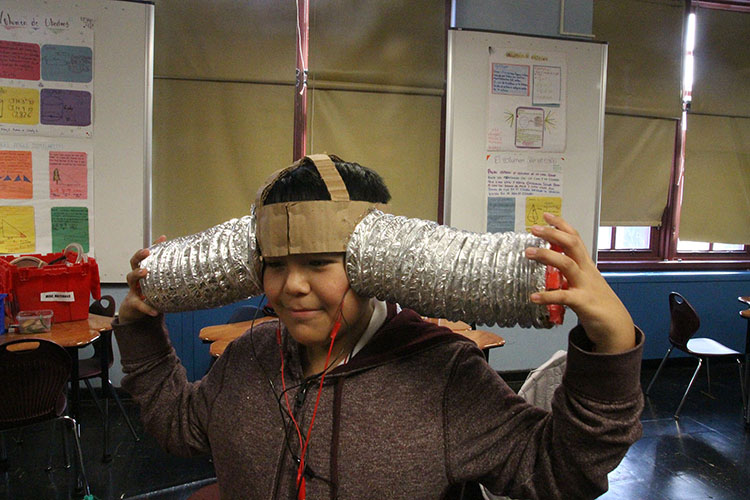 During the 2018-2019 school year, the theme was Interactive Soundsystems. Using funnels, slinkies, cardboard, analog electronics, motors, tin foil, chopsticks sewing and more, Beam Team designed the way that we turn the sound on and off, the way that we hear the sound, what the sound is, and one or more ways to manipulate the sound using Pure Data. Beam Center, 2018-2019.
