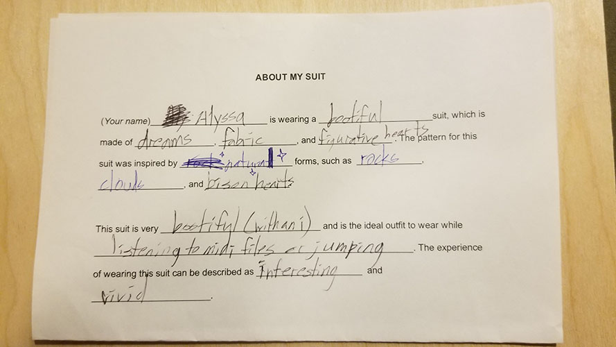 inspiration images onto our blank suits. Special assistance from Sally Cohen. Insight Into: Pattern Making, Beam Center, 2016